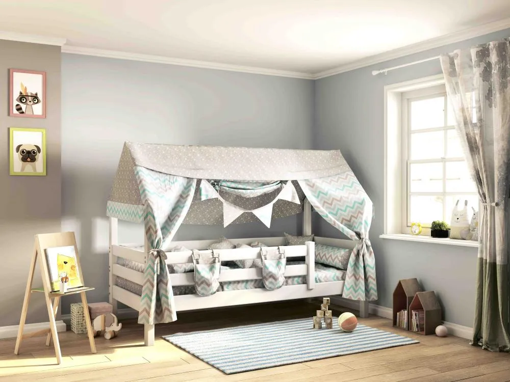 Все кровати «Соня» можно комплектовать аксессуарами из текстиля. Балдахин для кровати позволит создать ребенку уютный уголок, где можно как играть, так и хранить игрушки.