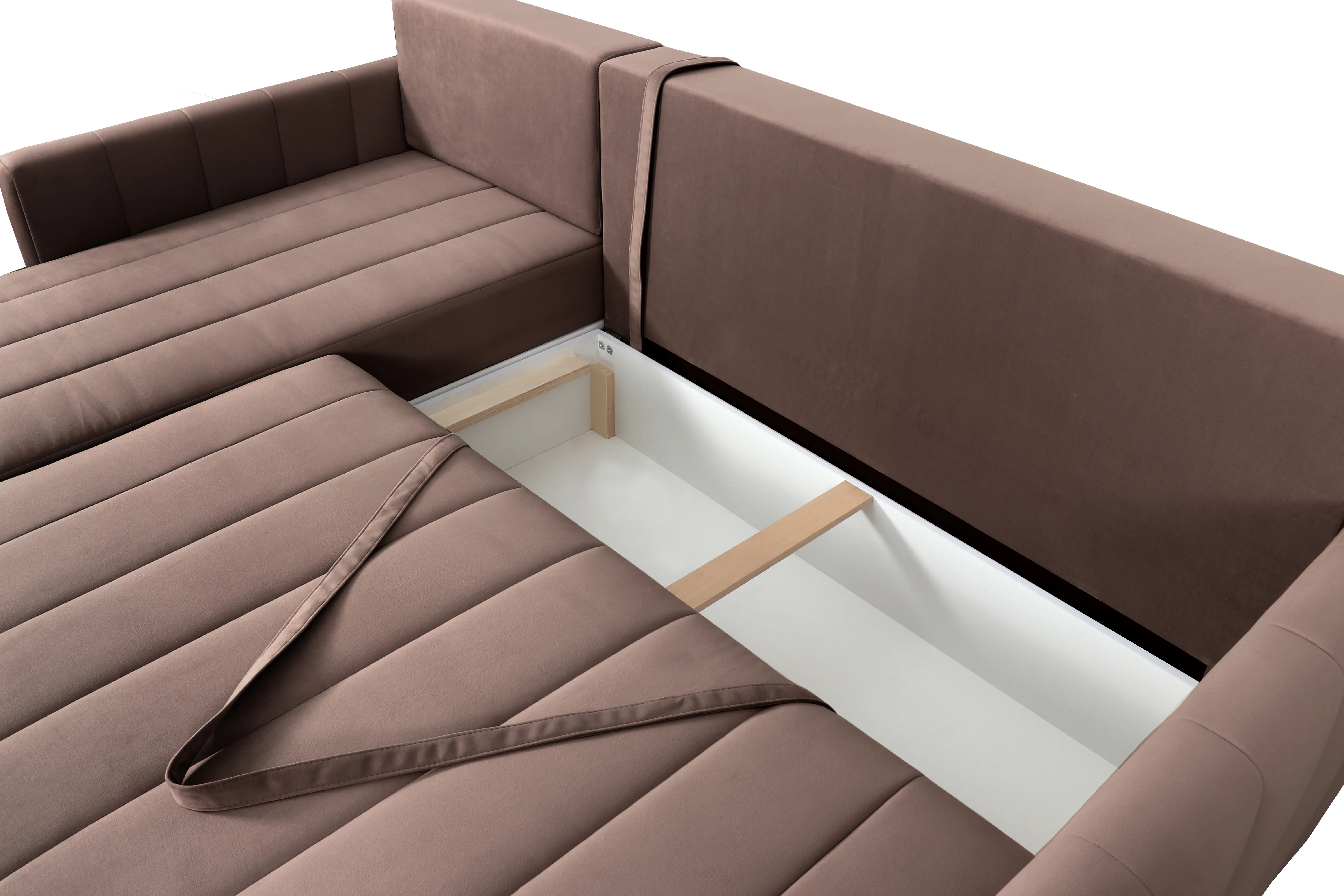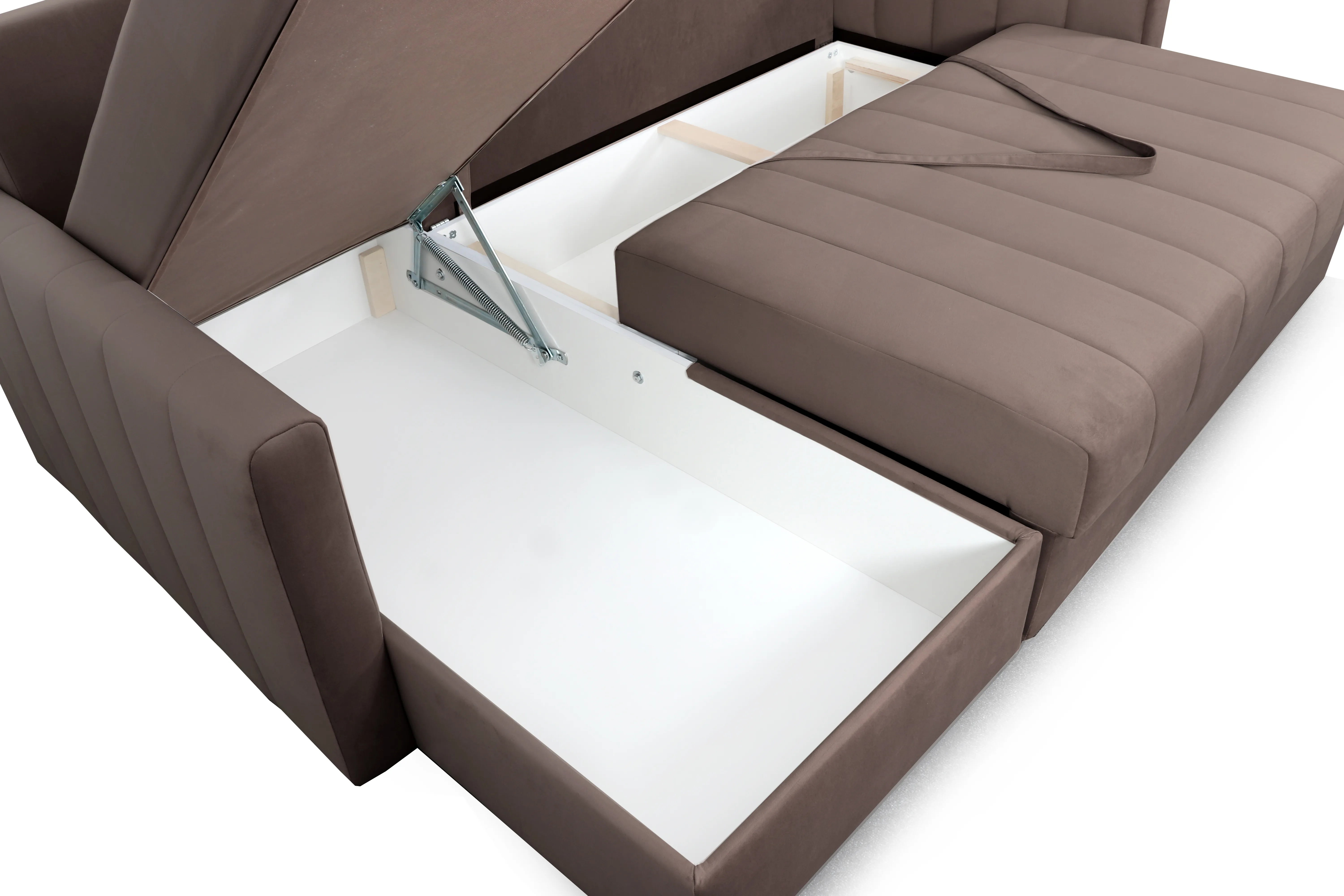 Диван удачно зонирует пространство и дополняет необходимым функционалом. В основании спального места блок независимых пружин для комфортного сна. Вместительный ящик для хранения постельных принадлежностей.